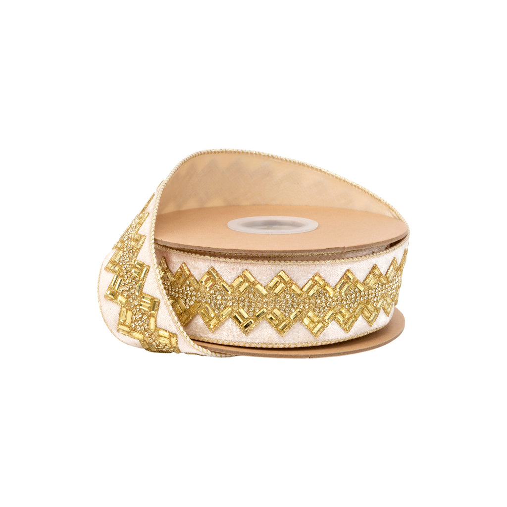 1 1/2" Jeweled Ribbon | Ivory | 10 Yard Roll