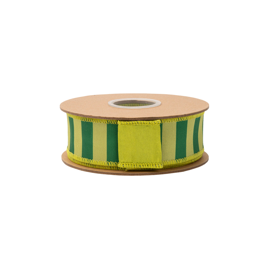 1 1/2" Wired Dupioni Ribbon | Green/Lime Horizontal Stripe w/ Green Backing | 10 Yard Roll