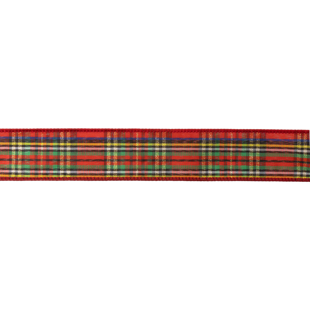 1 1/2" Wired Ribbon | Red/Black/Gold Plaid | 10 Yard Roll