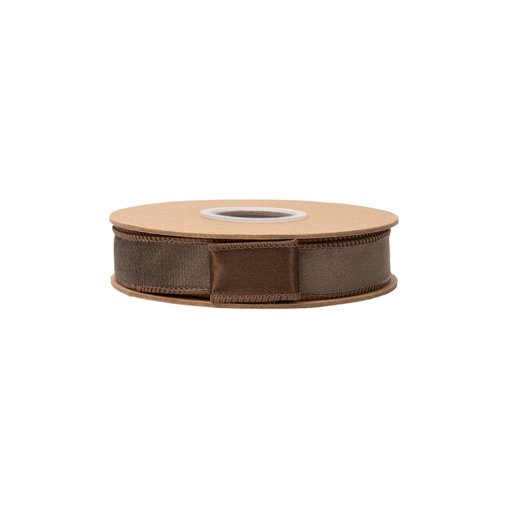 1” Reversible Classic Velvet Wired Ribbon | Brown w/ Brown Shimmer Backing | 10 Yard Roll