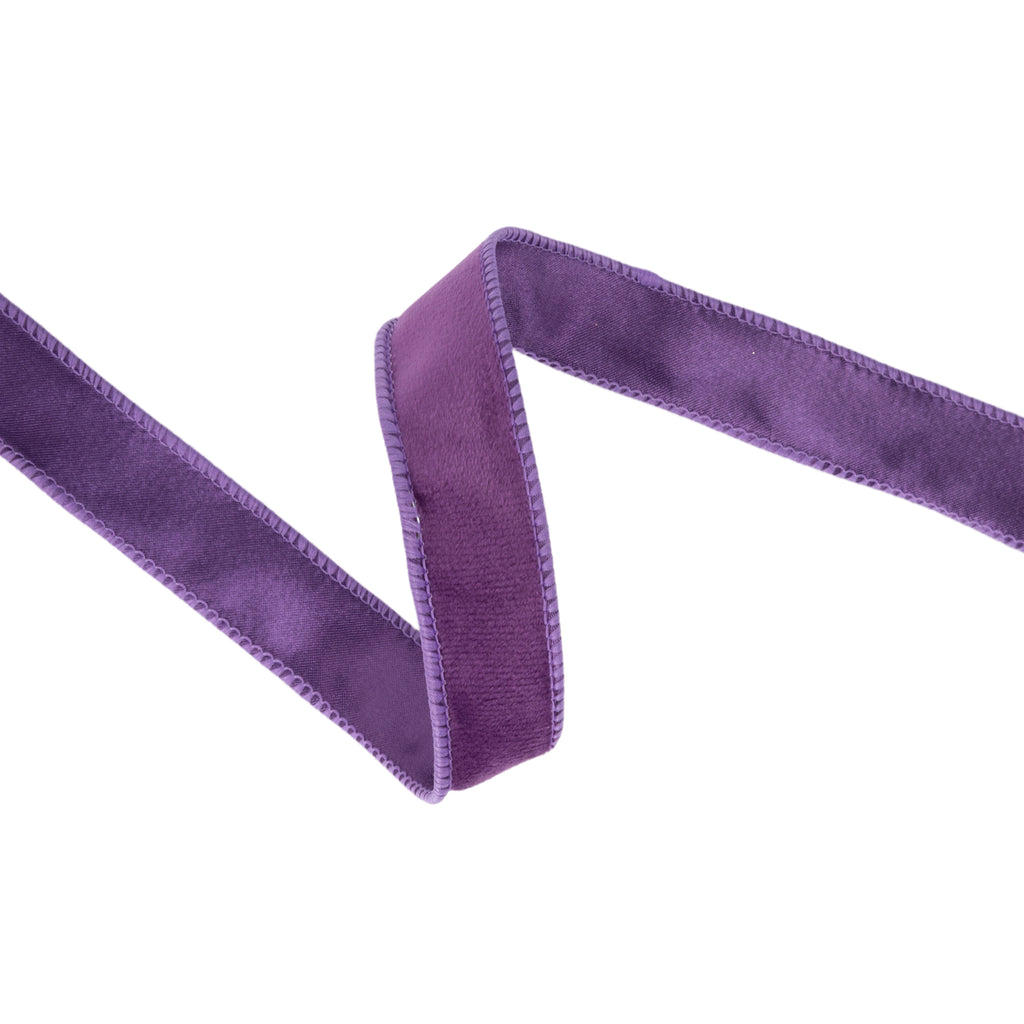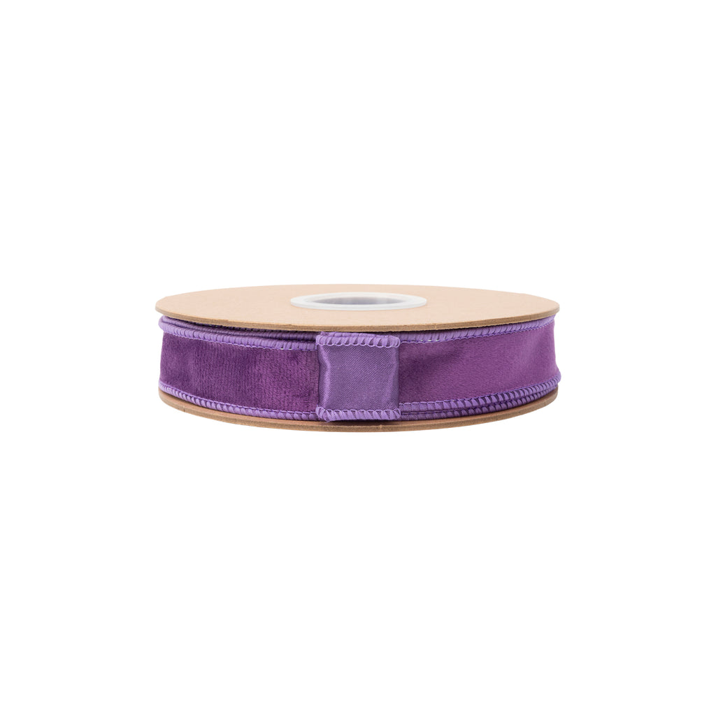 1" Reversible Classic Velvet Wired Ribbon | Purple/Purple | 10 Yard Roll