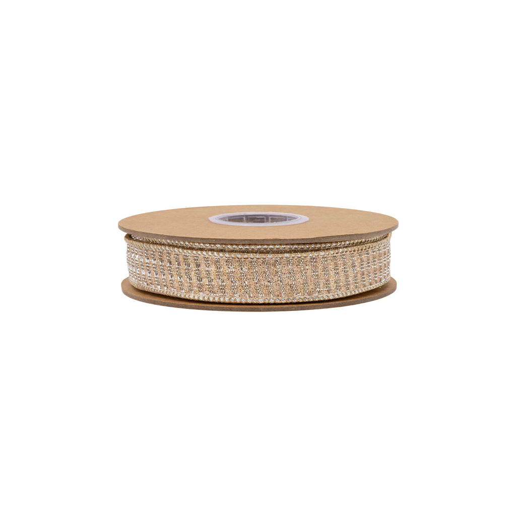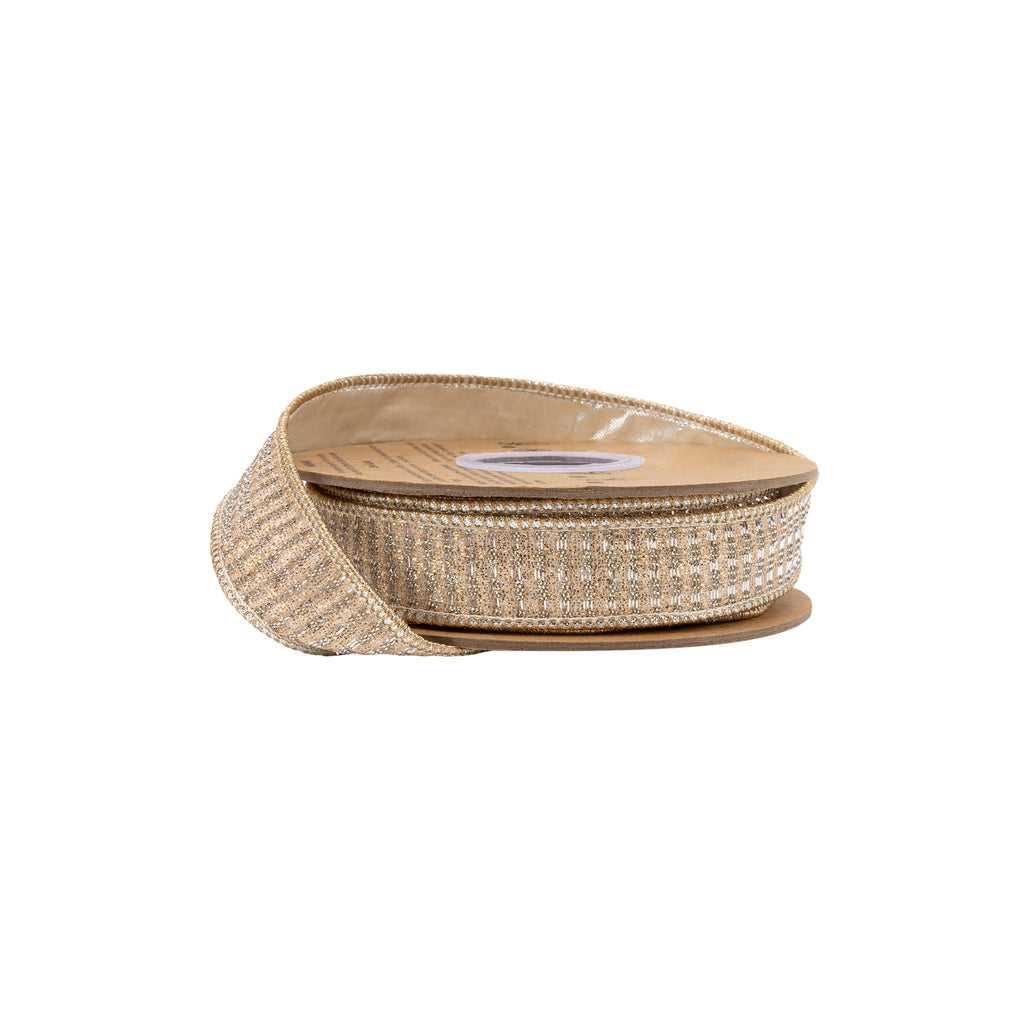 1" Wired Ribbon | Gold Sparkle w/ Champagne Metallic Backing | 10 Yard Roll