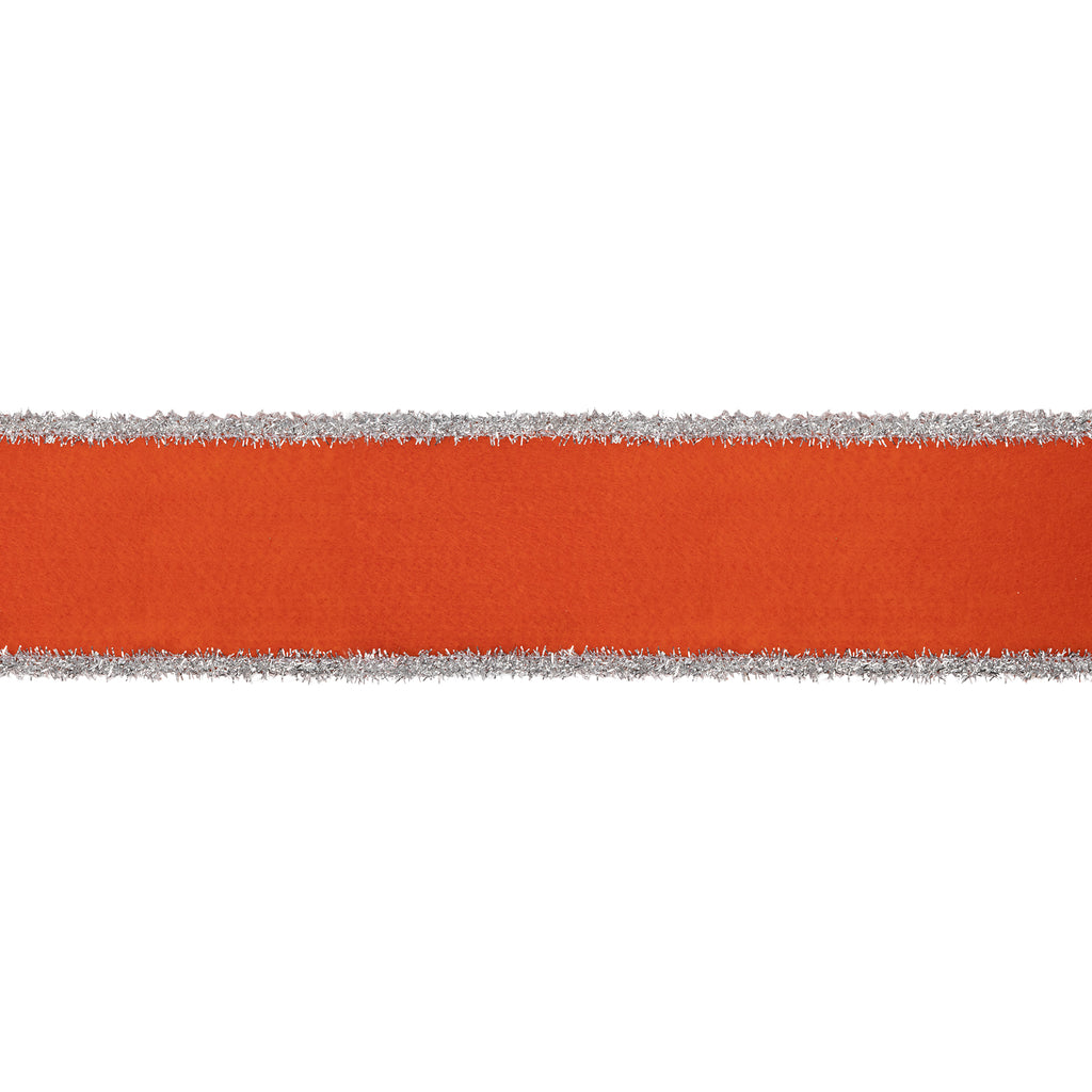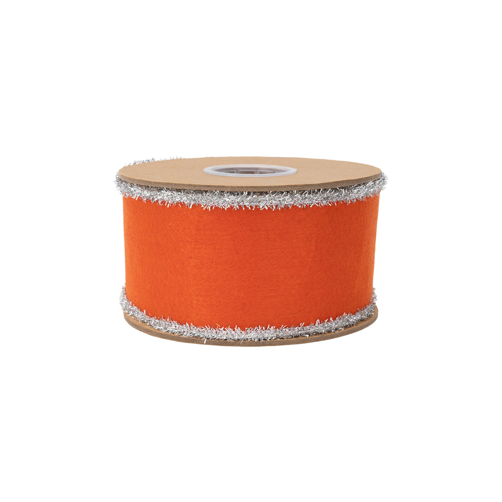 2 1/2" Felt Wired Ribbon | Orange w/ Tinsel Edge | 10 Yard Roll