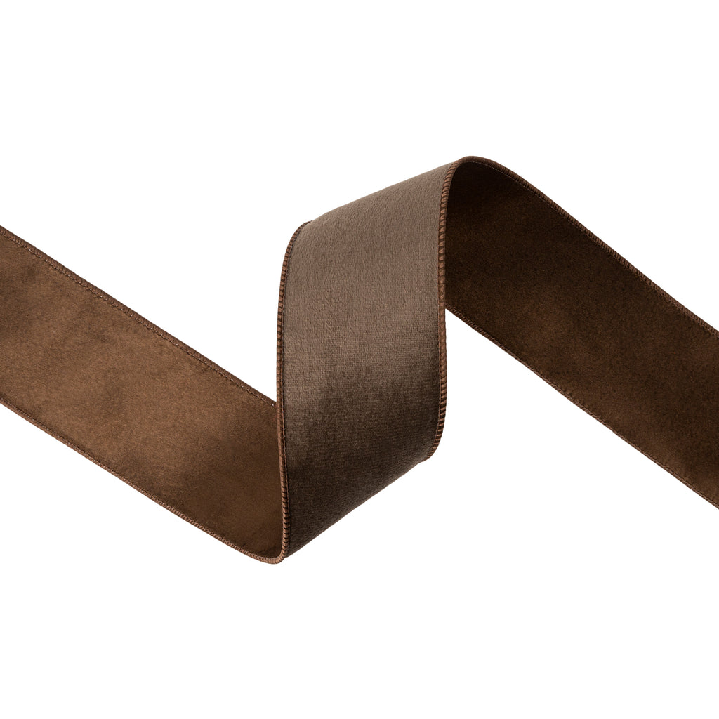 2 1/2” Reversible Classic Velvet Wired Ribbon | Brown w/ Brown Shimmer Backing | 10 Yard Roll