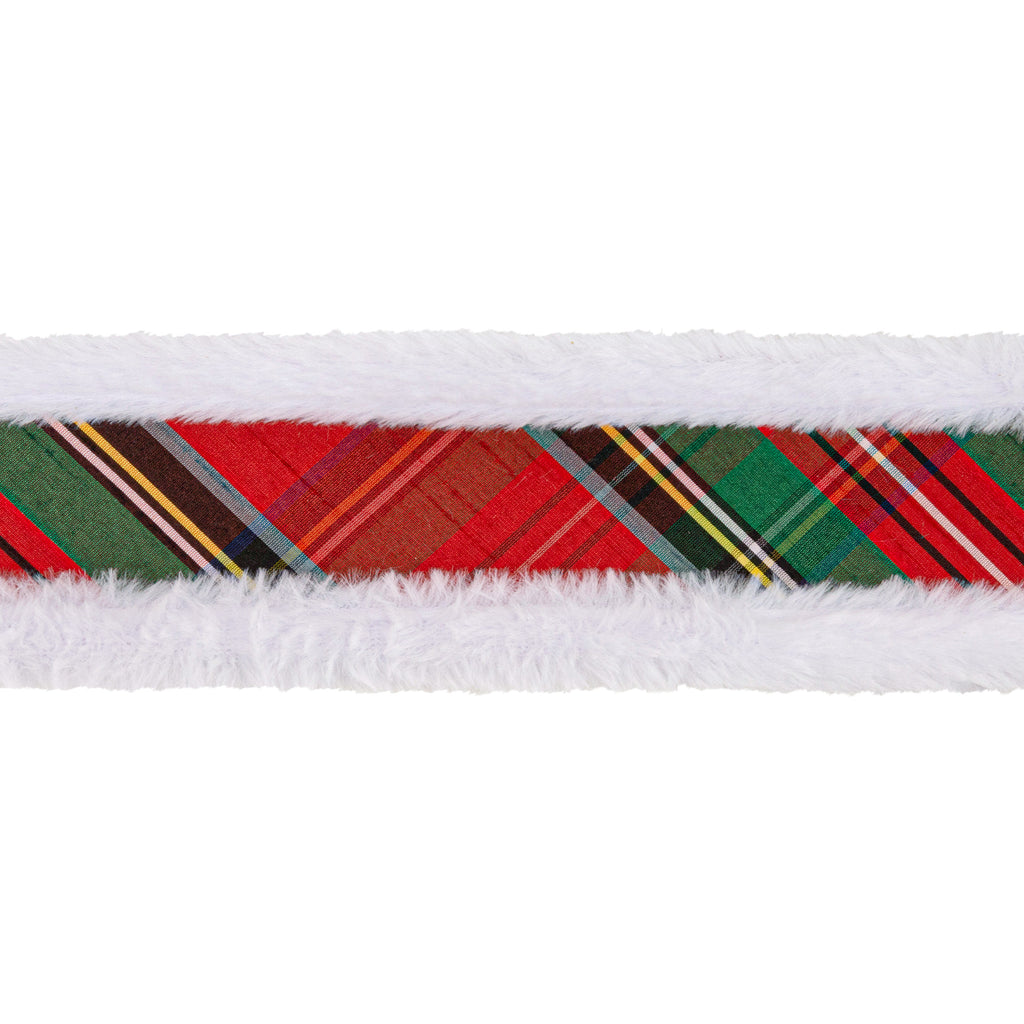 2 1/2" Wired Dupioni Ribbon | Christmas Plaid w/ Fur Piping | 10 Yard Roll