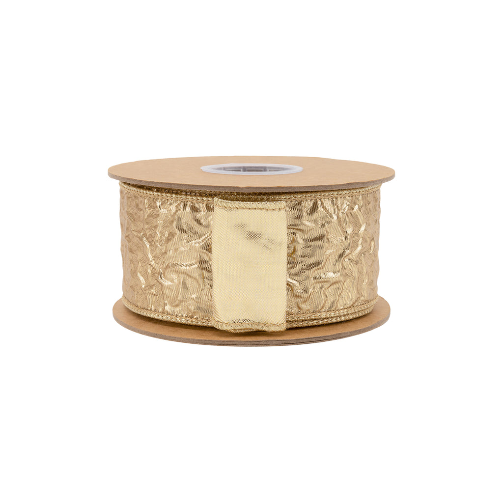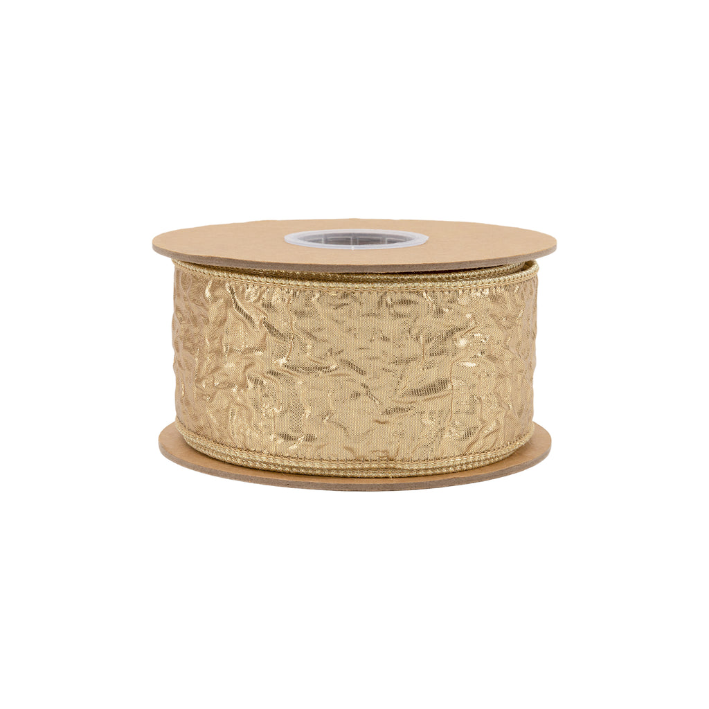 2 1/2" Wired Dupioni Ribbon | Textured Gold Metallic w/ Metallic Backing | 10 Yard Roll