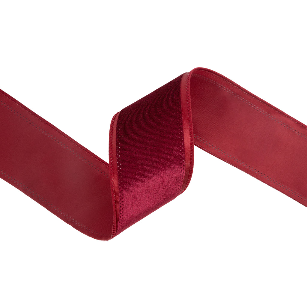 2 1/2" Wired Velvet Ribbon | Burgundy Velvet Center | 10 Yard Roll