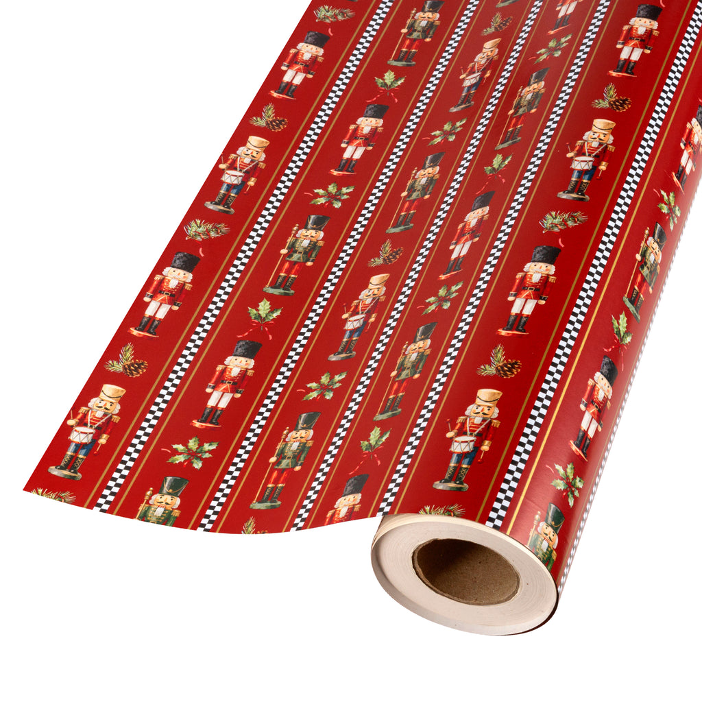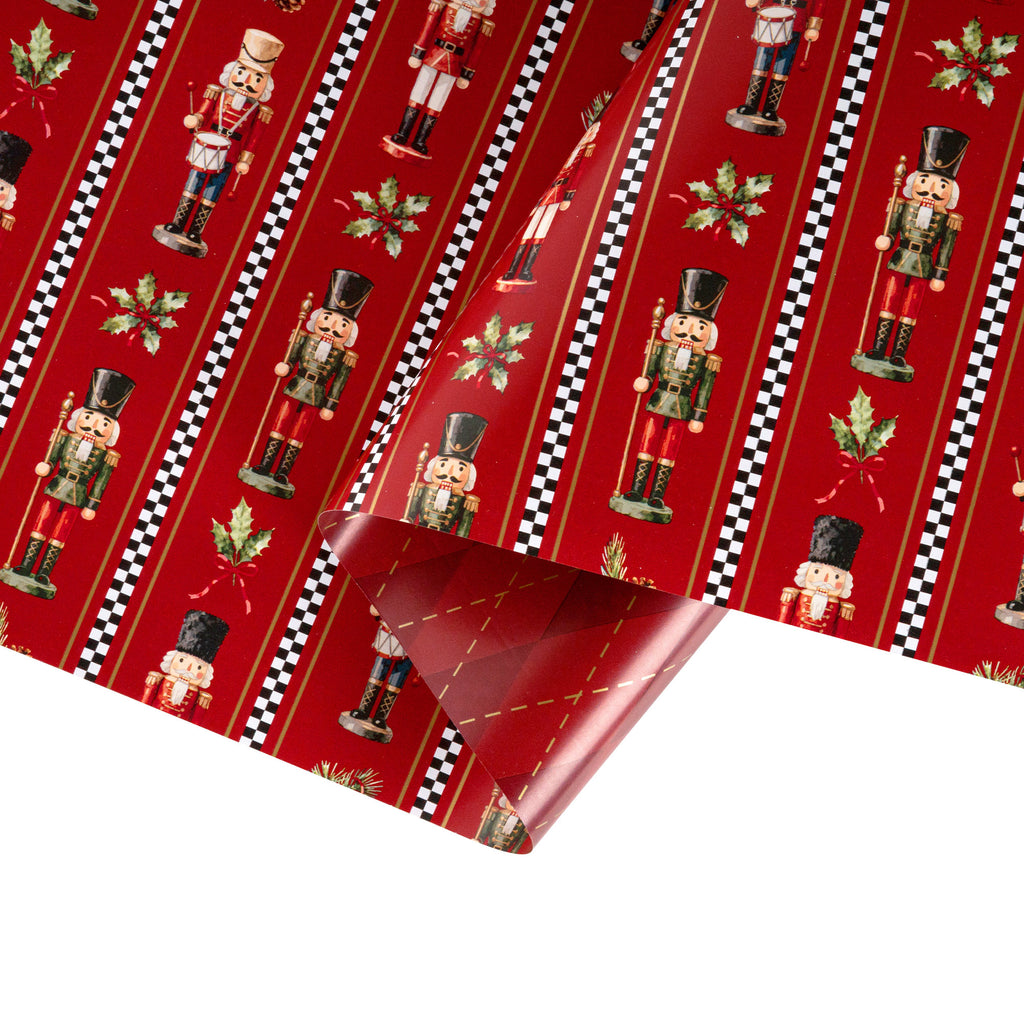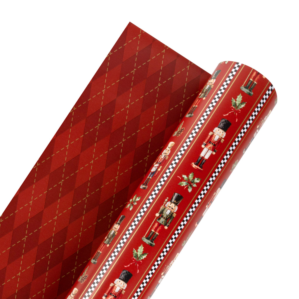 24" x 417' Holiday Reversible Metallic Wrapping Paper Half Ream | Checkerboard Nutcracker and Holiday Argyle