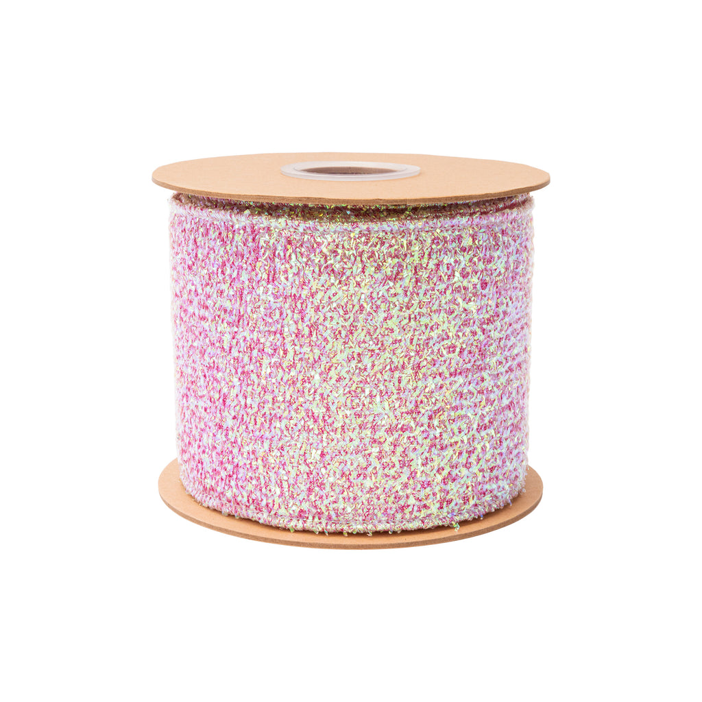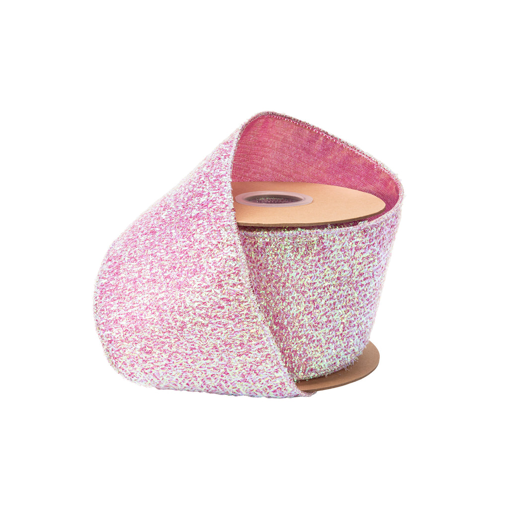 3.6" Wired Ribbon | Iridescent Texture on Fushcia Backing | 10 Yard Roll