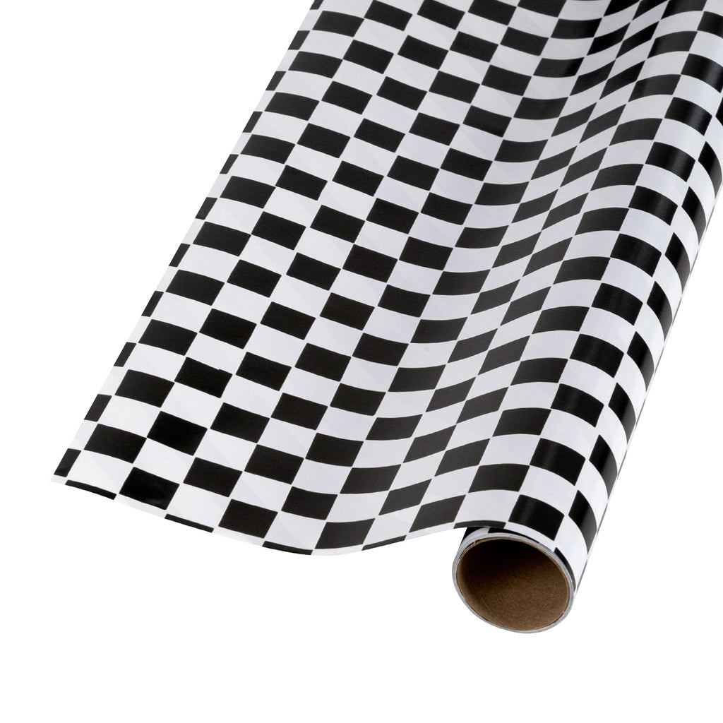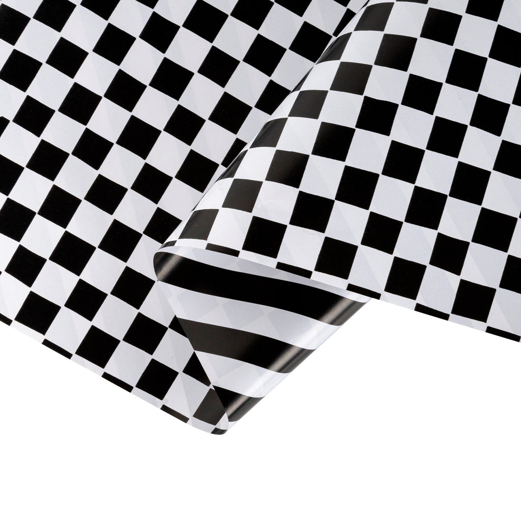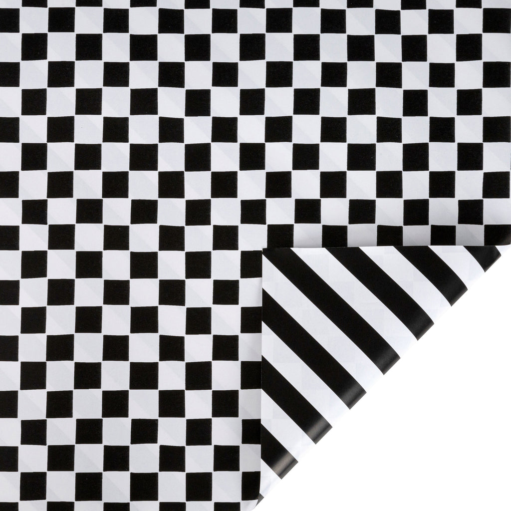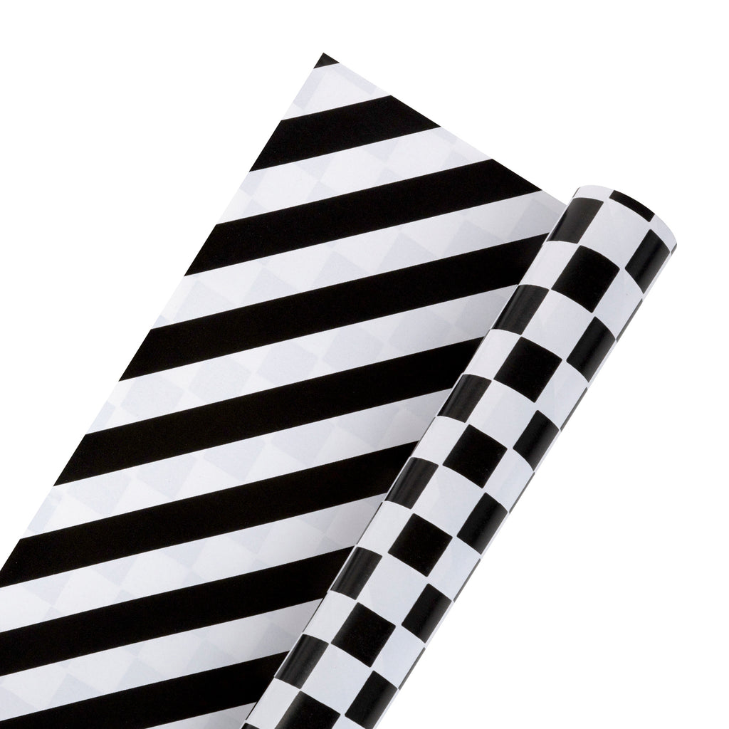 30" x 10' Holiday Reversible Wrapping Paper | Black/White Checked and Black/White Stripe