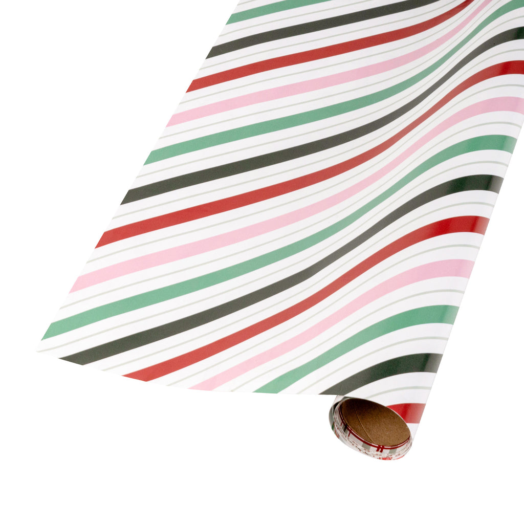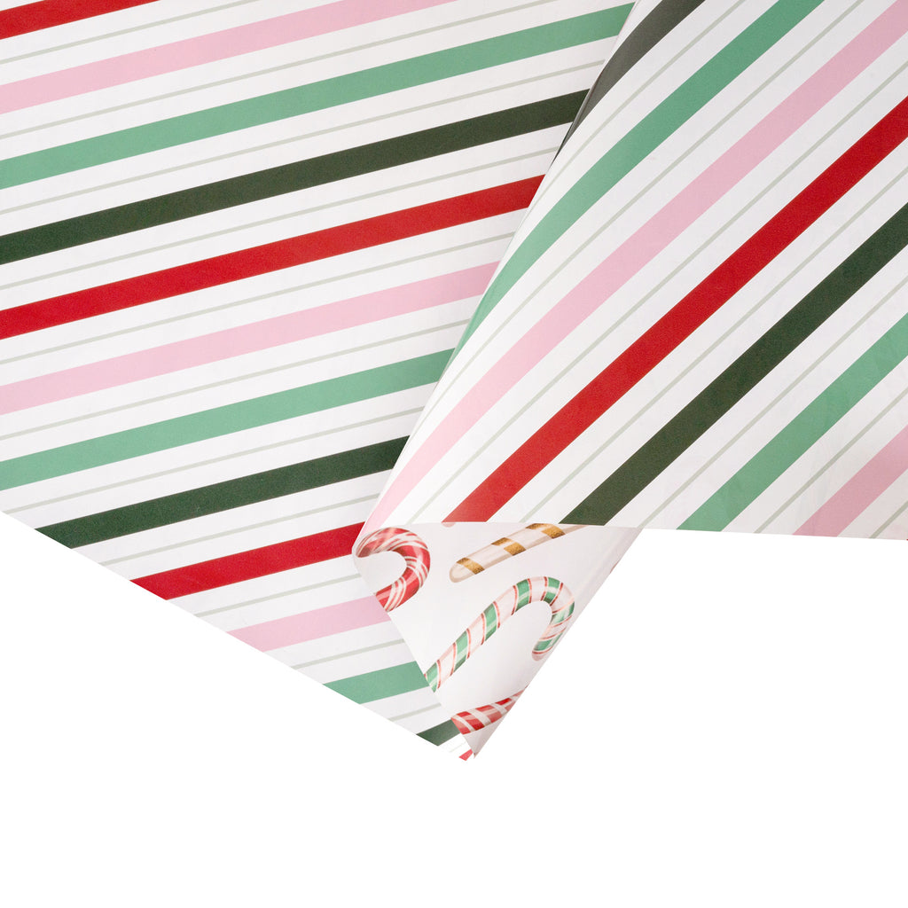 30" x 10' Holiday Reversible Wrapping Paper | Pink, Red and Green Candy Stripe and Candy Cane