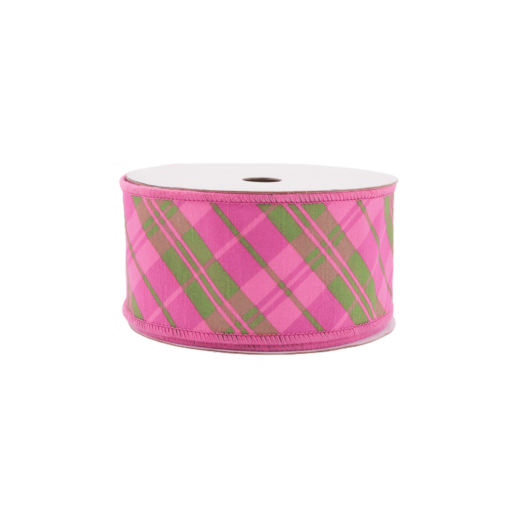 4" Wired Dupioni Ribbon | Bias Plaid Pink/Multi w/ Taffeta Fused Back | 10 Yard Roll