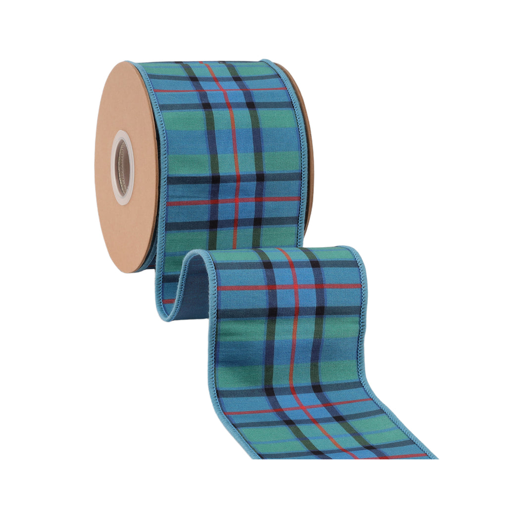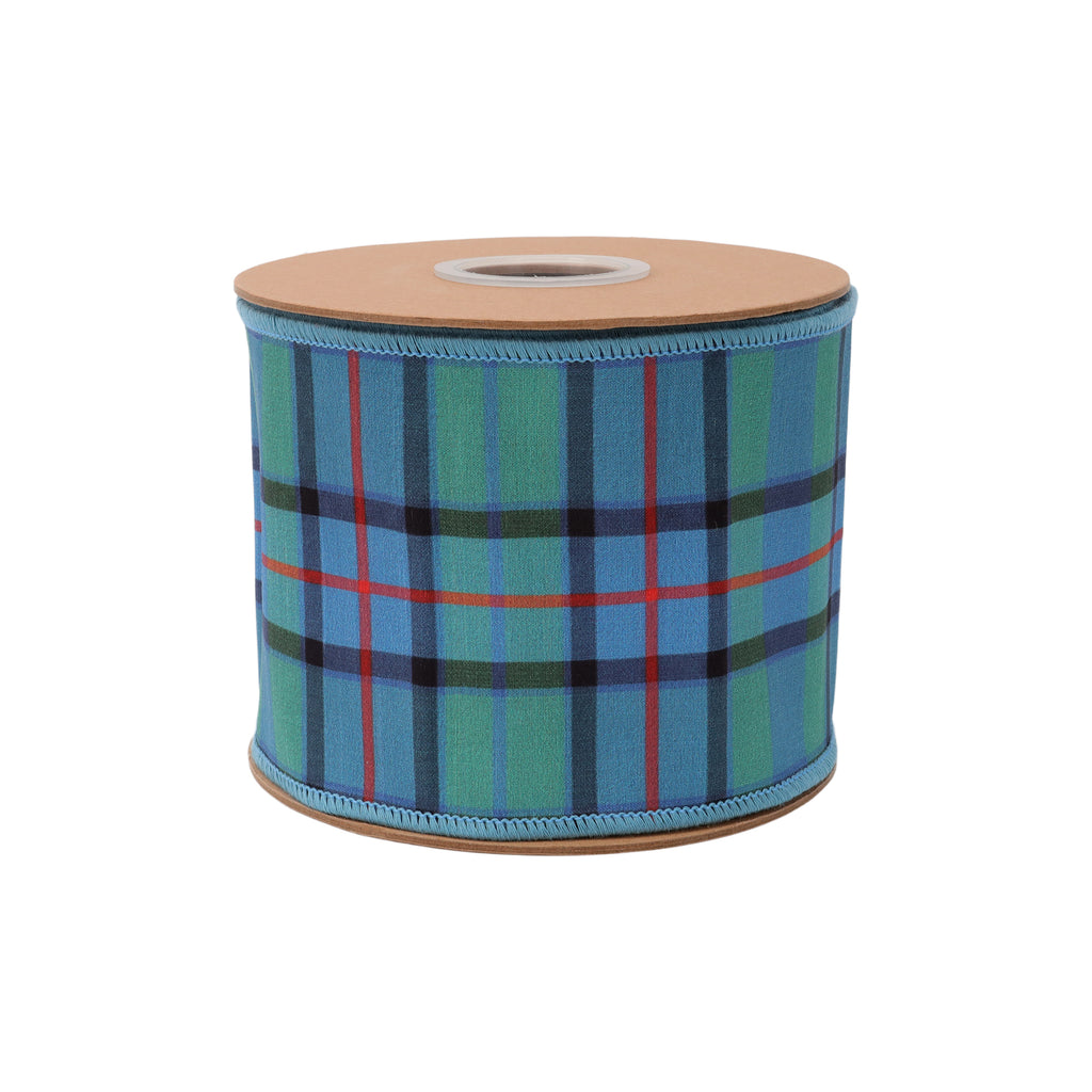 4" Wired Dupioni Ribbon | Blue/Green/Red Plaid w/ Fused Dupioni Backing | 10 Yard Roll