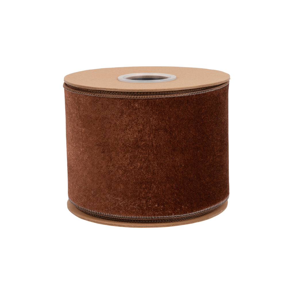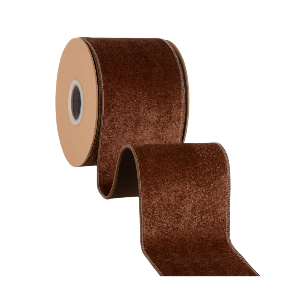 4" Wired Heritage Velvet Ribbon | Brown | 10 Yard Roll