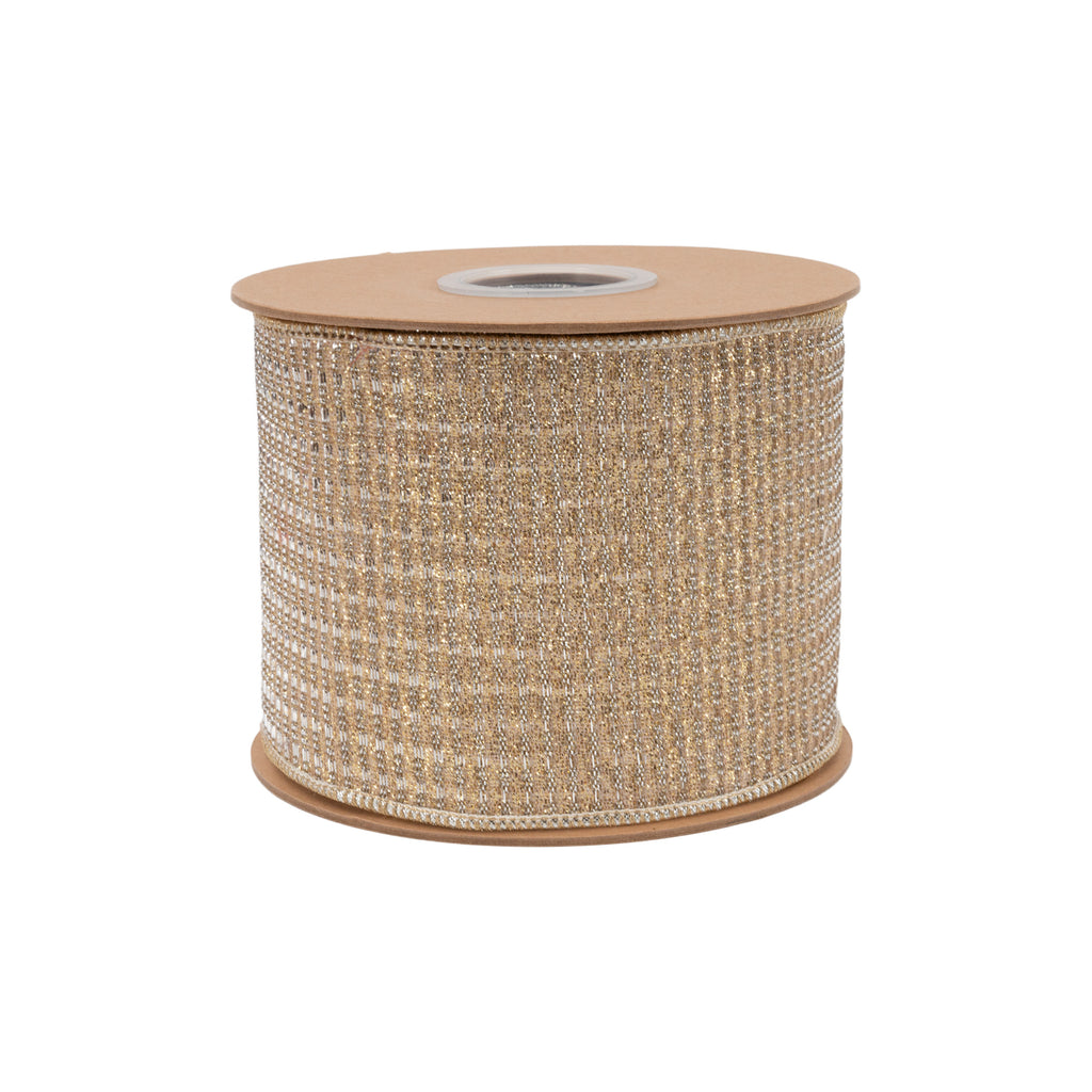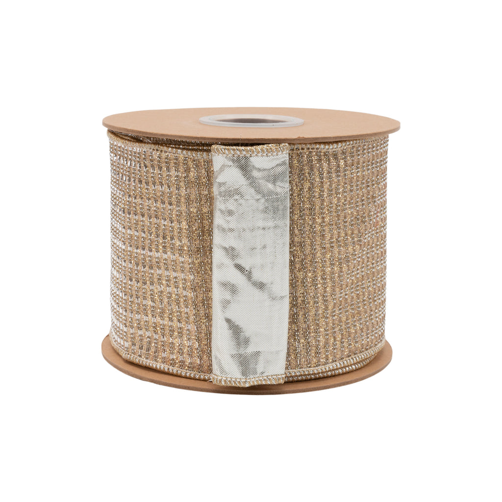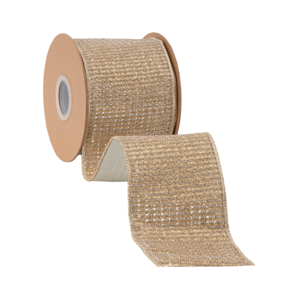 4" Wired Ribbon | Gold Sparkle w/ Champagne Metallic Backing | 10 Yard Roll